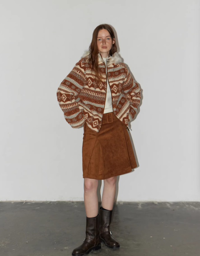 Design Inspiration Inspired by Nordic winter craftsmanship and vintage alpine outerwear, this jacket blends folkloric jacquard patterns with a contemporary relaxed silhouette. The hooded design adds a casual, protective layer while maintaining a strong visual identity.